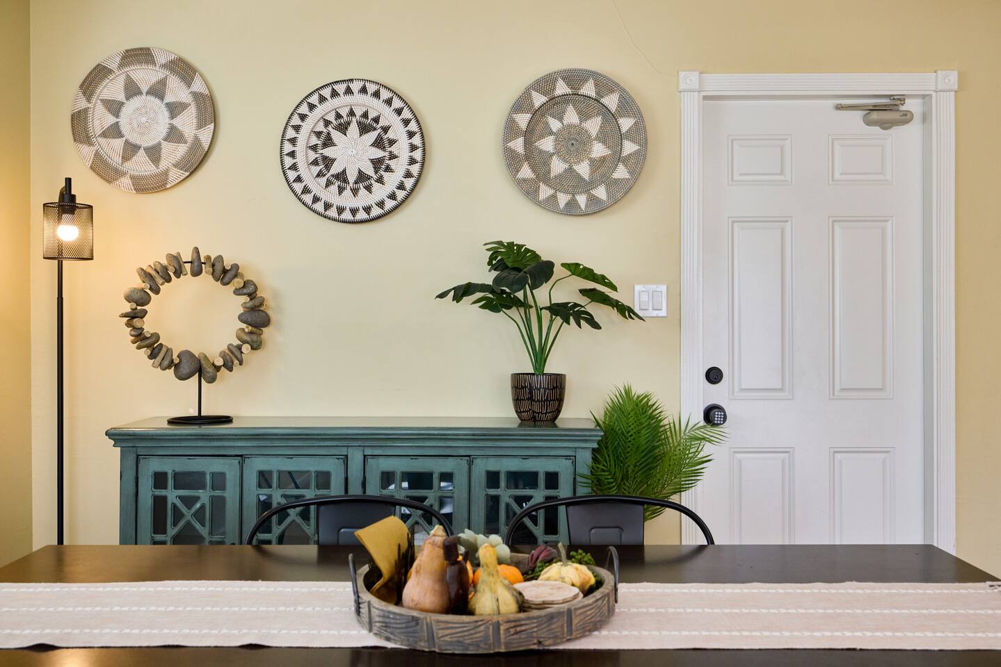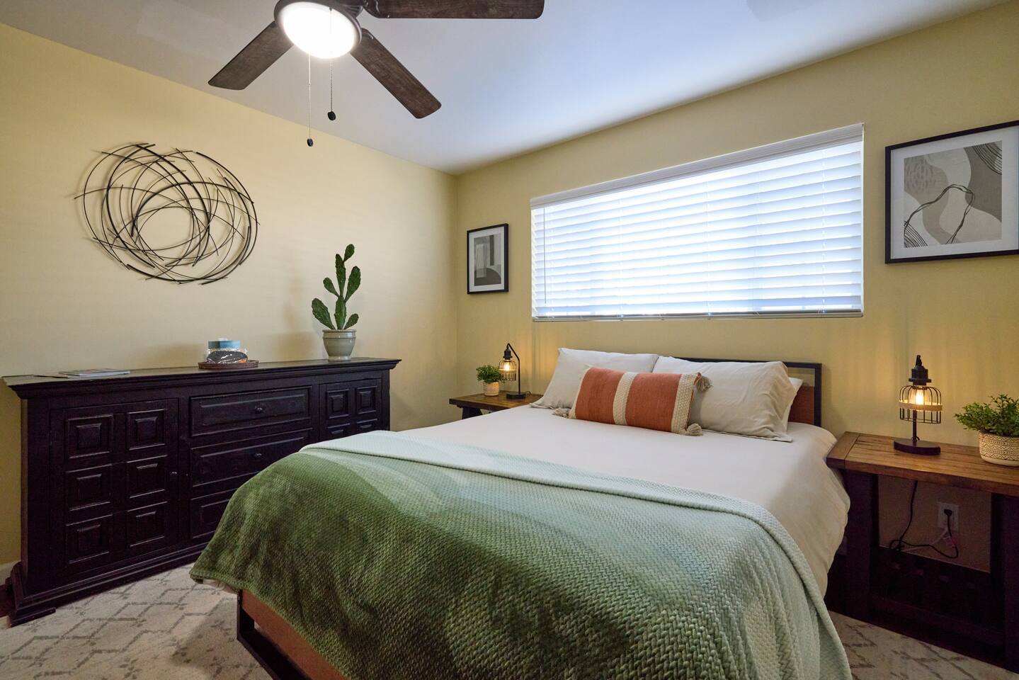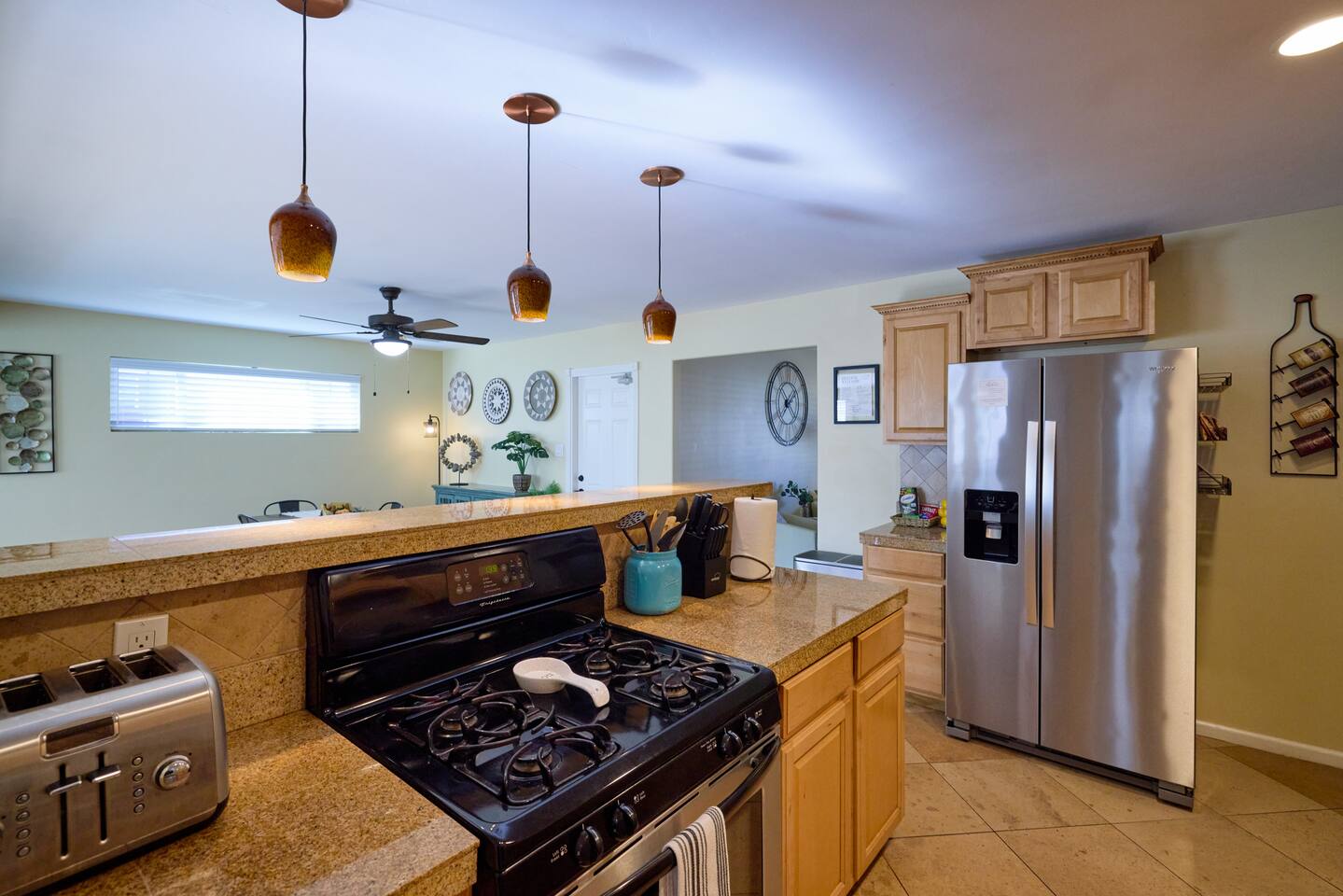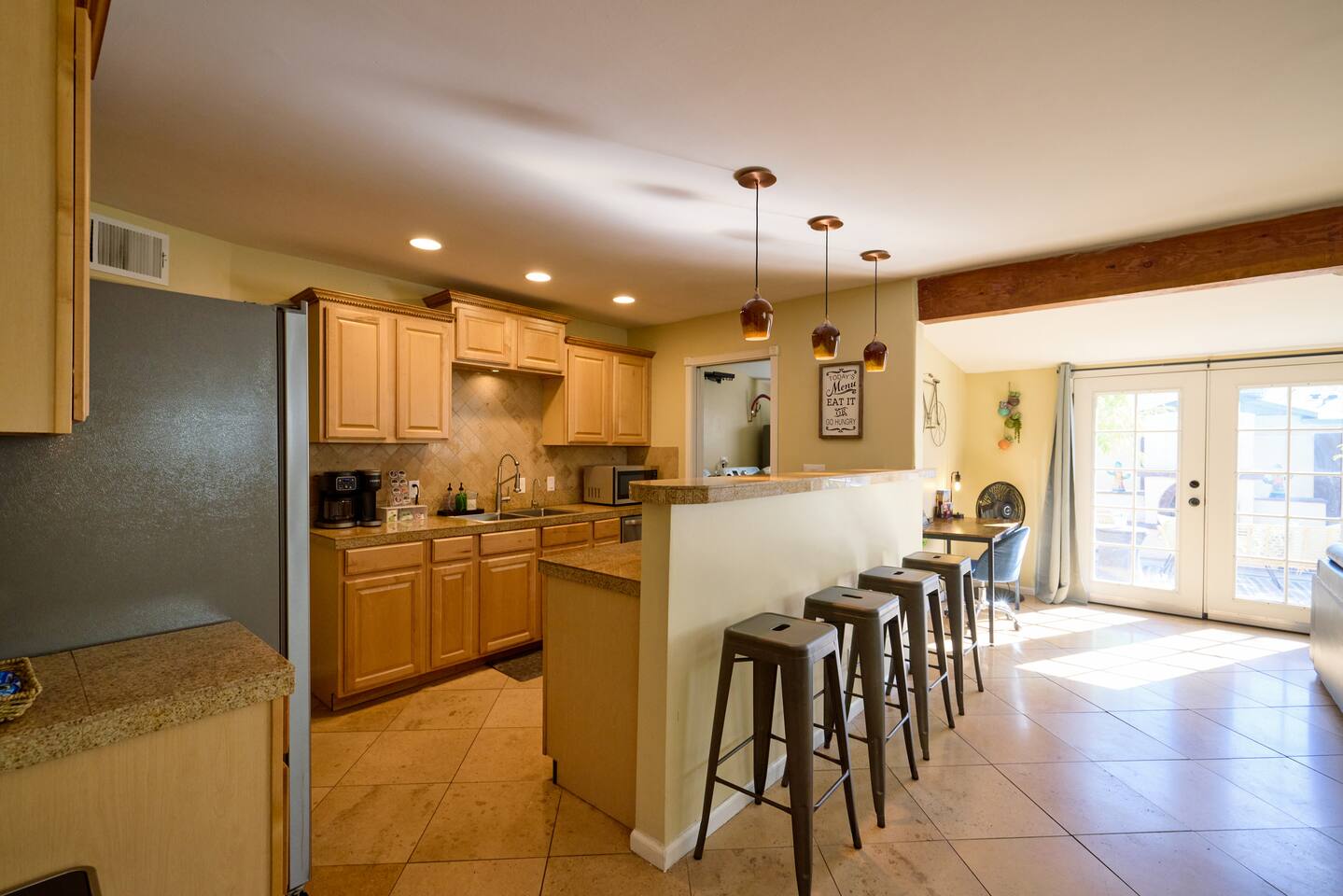 🌵 Welcome to Desert Dream Your warm and spacious retreat just minutes from vibrant Old Town Scottsdale. This beautiful home blends classic desert charm with modern comfort, featuring tile floors, tasteful décor, and all the essentials for a relaxing and memorable stay. We prioritize a clean and sanitary environment for every guest, with professional cleanings performed before each stay to ensure your comfort and peace of mind. Whether you're planning a quick getaway or an extended visit, Desert Dream offers the perfect setting for your Arizona escape. 🏡 Home Features 🐾 Pet-Friendly – Up to 2 pets welcome per stay ($125 additional pet fee applies) 🌞 Backyard Oasis Step through the double doors and enjoy the indoor-outdoor flow to a beautiful private backyard featuring: Outdoor dining table with umbrella Cozy fireplace and BBQ grill Comfortable seating area Corn hole set for outdoor fun Large natural grass area perfect for kids and dogs to run, play, and enjoy the outdoors 🍽️ Fully Equipped Kitchen – Premium Café appliances with coffee, creamer, tea, and snacks included 💧 Filtered Water – Available at the kitchen sink and refrigerator via a reverse osmosis system 🛏️ Sleeps Up to 8 Guests – 3 bedrooms, 4 beds, + 1 pull-out sofa bed 🌐 High-Speed WiFi – Ideal for streaming, working remotely, or staying connected 📺 Streaming Services – 5 complimentary streaming services (Hulu, Disney+, Peacock, Paramount+, HBO Max) Bedroom 1 – Master Suite, 1 king bed En-suite bathroom with jetted soaking tub, a separate walk-in shower, and a private toilet room Smart TV – your own personal retreat Bedroom 2 Queen-size bed Cozy and ideal for couples or solo travelers Bedroom 3 Two Twin beds Perfect for kids or friends sharing a room Bonus Sleeping Space Pull-out sofa in the front living room converts to a full-size bed Great for extra guests or larger groups Hallway Bathroom Full bath with essentials included 🛋️ Two Comfortable Living Rooms Living Room 1 Located at the front of the house Stylish décor, and a welcoming atmosphere to relax Living Room 2 Bright and open space with large Smart TV Includes dining area and a dedicated workspace Flows seamlessly into the kitchen — the true heart of the home 🎲 Board games conveniently located near the dining table 🧺 Laundry Room Large washer and dryer Laundry detergent, dryer sheets, iron, and ironing board provided
